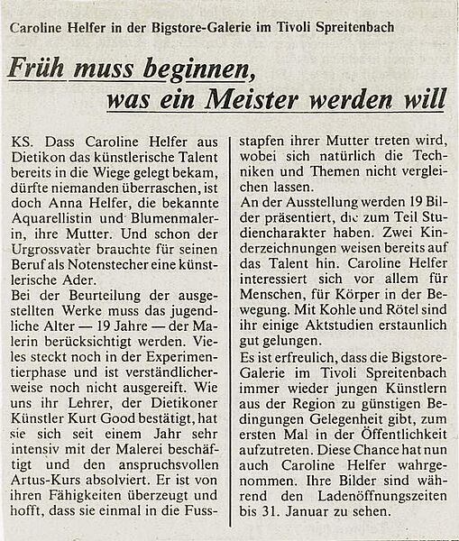 Mit 20 Jahren bekam ich dann die Möglichkeit einer ersten Ausstellung im Tivoli Spreitenbach, die sehr erfolgreich war.